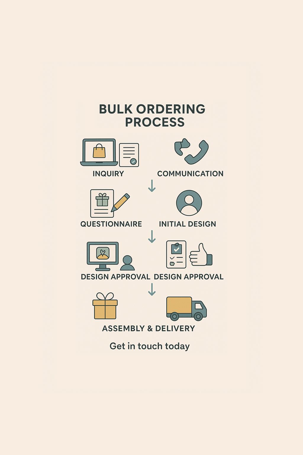 - DESIGN APPROVAL - Once you sign off on the visual design and submit payment, we will prepare final samples for signoff. It’s time for us to begin building your gifts!